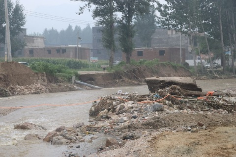 7月30日22时,临时便道被冲毁,跨三会河的临时桥梁被冲毁,供水系统大口井被冲毁,交通中断,停水停产。