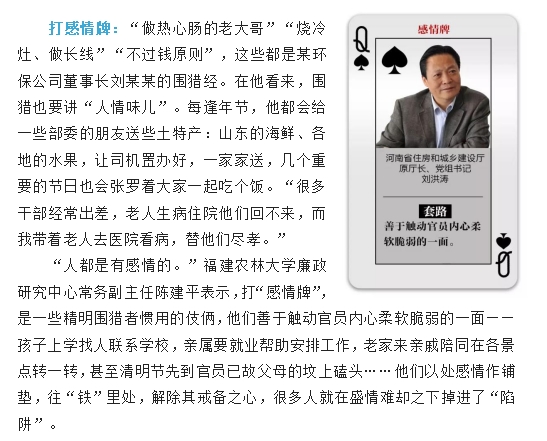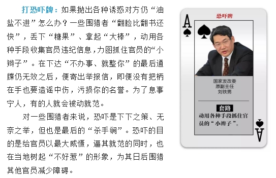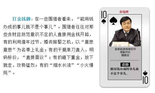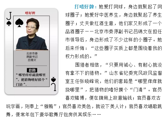 采取怎样的猎取手段,对围猎者来说是很有讲究的。“苍蝇专叮有缝的蛋。”围猎者笑里藏刀,专挑软肋,因人下套,能炮制出“总有一款适合你”的“牌路”。面对这种潜移默化的“围猎”方式,党员领导干部须臾不可不警惕只有心中保持对纪法的敬畏,识别别有用心的“围猎”者,自觉净化朋友圈,以德交友,防损友、结益友,才能真正做到初心不改、底线不失。